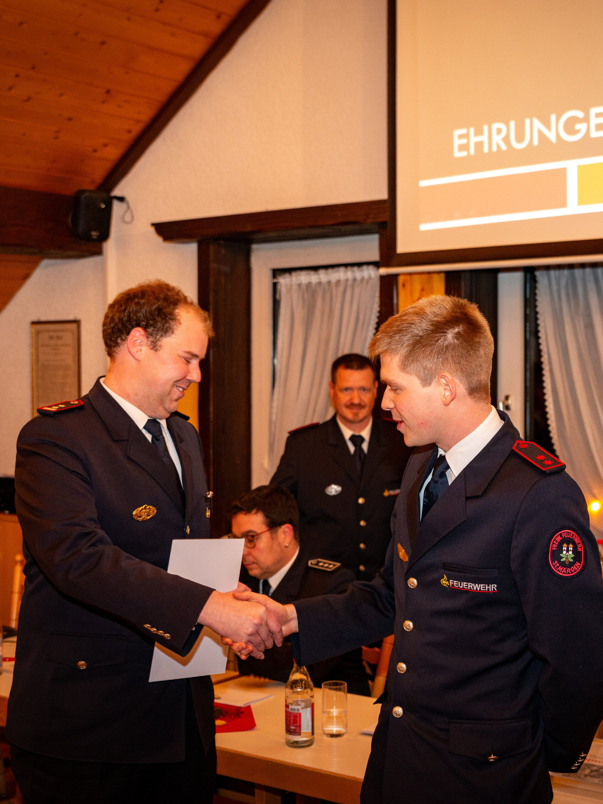 Im Laufe des Jahres 2025 durfte die Feuerwehr St. Märgen folgende Kameraden willkommen heißen: Jonathan Hog, Robin Schuler, Simon Stotz, Leon Willmann, Luca Willmann und Andreas Wehrle. Gleichzeitig tritt Manfred Mark nach 42 Jahren von der Einsatzabteilung in die Altersmannschaft über. Bedauerlicherweise gilt es mit Marcel Schick und Max Stöhr auch zwei Austritte zu verbuchen.