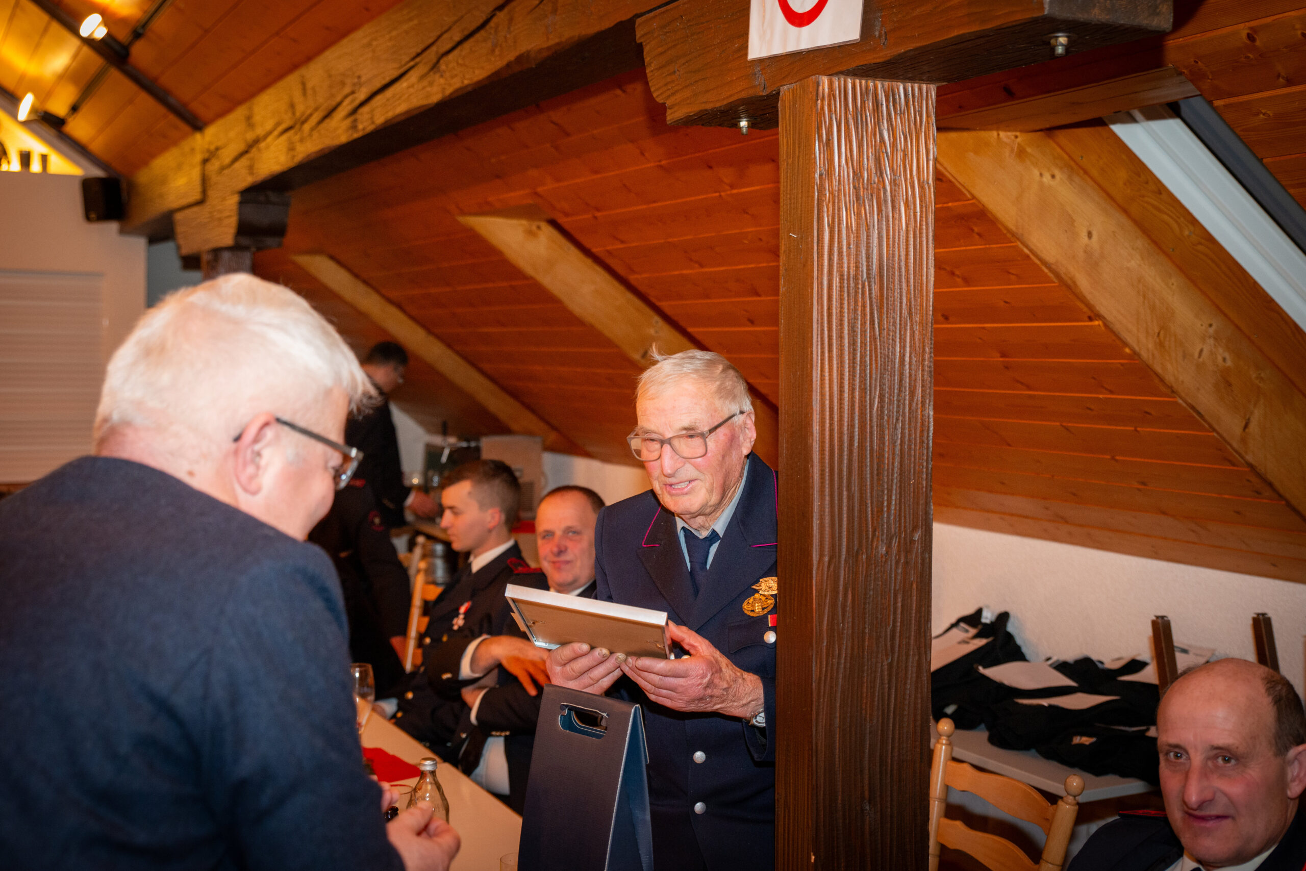 Die Kameraden Josef Faller, Ehrenkommandant Eugen Sigg (beide 70 Jahre), Benedikt Schlegel, Claus Schlegel, Felix Walter, Andreas Waldvogel und Kevin Löffler (jeweils 15 Jahre) wurden für ihren langjährigen Dienst in der Freiwilligen Feuerwehr geehrt.